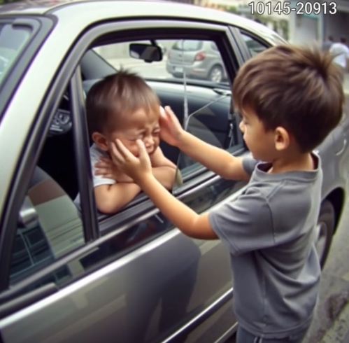 The boy, still catching his breath, tried to explain, but his words were lost amid the teacher’s rebuke. The teacher continued, not noticing the boy’s flushed face or the small cuts on his hands from the broken glass. His mind was still with the little boy he had rescued, the terrified eyes that looked up at him with gratitude as he pulled him from the car. The memory of the stone, the crash, the scream—it all played back in his mind like a dramatic movie scene.
