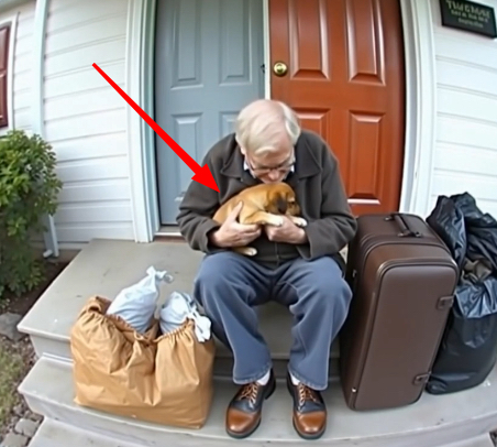 I never thought I’d find my 86-year-old granddad outside his own house, standing there like a stranger. A battered suitcase sat by his feet, flanked by two trash bags. Next to him, a small whimpering puppy with a cast on its leg huddled close, seeking comfort from the chill in the air.