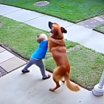 The video continued, revealing the girl’s innocent intrigue turning into playful curiosity. She began to tug gently at Rocky’s tail, giggling. Rocky, ever patient, simply turned his head, offering her a gentle nuzzle as if to say, “Let’s play nice.” His demeanor remained gentle and tolerant.