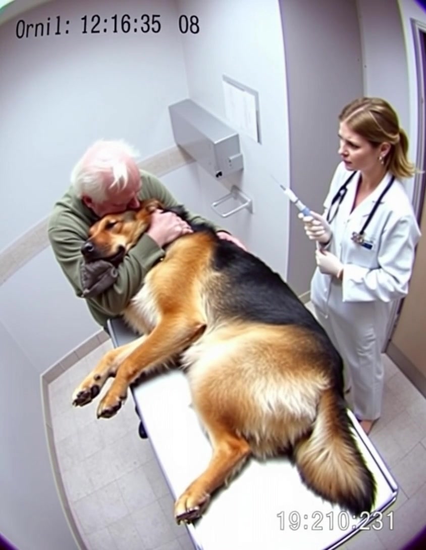 Leo’s chest, which had been heaving with labored breaths just moments before, now seemed to settle into a rhythm that was astonishingly smooth and steady. The room, tense with sorrow and expectation, held a collective, incredulous breath. The veterinarian, whose practiced hands had been poised to deliver the final relief, hesitated. Her eyes were wide, scanning Leo’s body for some explanation, as though she were witnessing a miracle unfold before her.